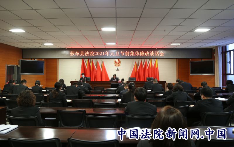 法院讯(王琼)为进一步落实全面从严治党主体责任,筑牢干部廉洁自律思想防线,让法院重点岗位人员始终保持头脑清醒,从严要求自己,绷紧廉洁自律这根弦,2020年12月30日,莎车县人民法院组织召开元旦节前集体廉政谈话会,对内设机构负责人进行集体谈话。莎车县法院党组书记、副院长杨君萍主持会议。