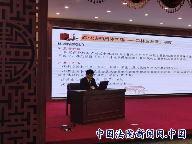 在宣讲活动中,法院书记员朱延旭首先针对清明节期间,讲解了《中华人民共和国森林法》的有关法律法规,并提醒职工:清明节将至,上山祭扫的野外活动将大量增加,必须高度重视森林防火问题,切勿携带火种入林,确保林区社会秩序稳定。同时向现场职工介绍了林区内常见的国家保护植物,并表示林区法院严厉打击破坏森林及珍稀野生动植物资源犯罪行为,林区生态安全需要大家共同守护。