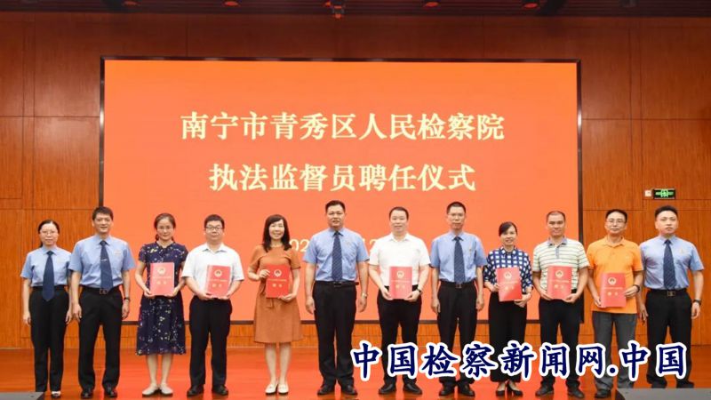 聘任仪式上,青秀区检察院党组书记、检察长王运华为受聘的15名执法监督员颁发聘书,并邀请执法监督员参观了该院的检察文化长廊。