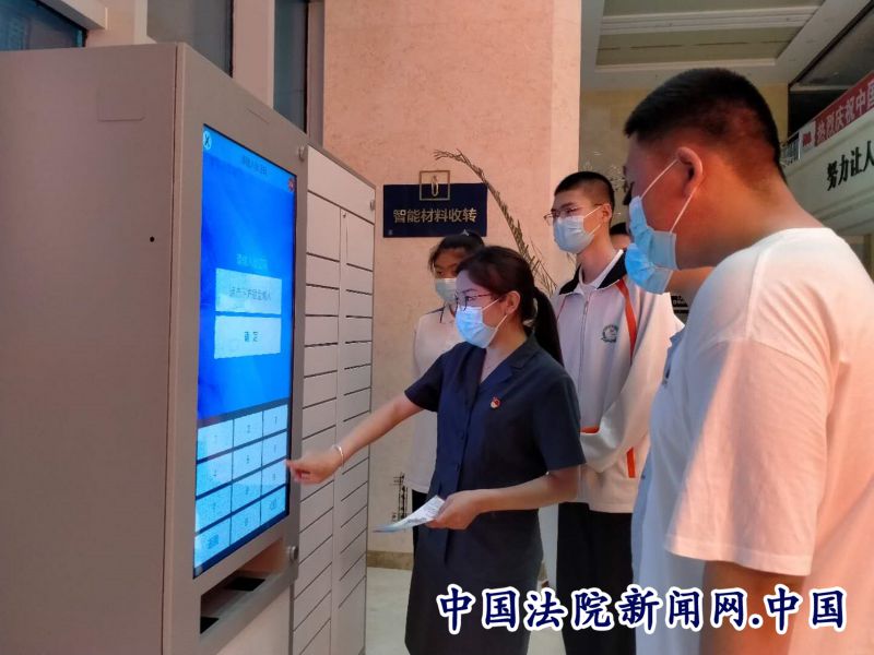 模拟庭审结束后,讲解员带领学生们来到了二楼立案大厅,给学生们介绍了玛纳斯县人民法院智能终端自助服务区的建设,向同学们展示如何使用这些设备,以及这些设备所带来的成效,这些功能强大、操作便捷的设备,使学生们大开眼界。