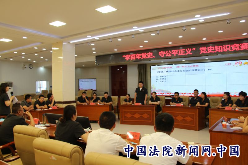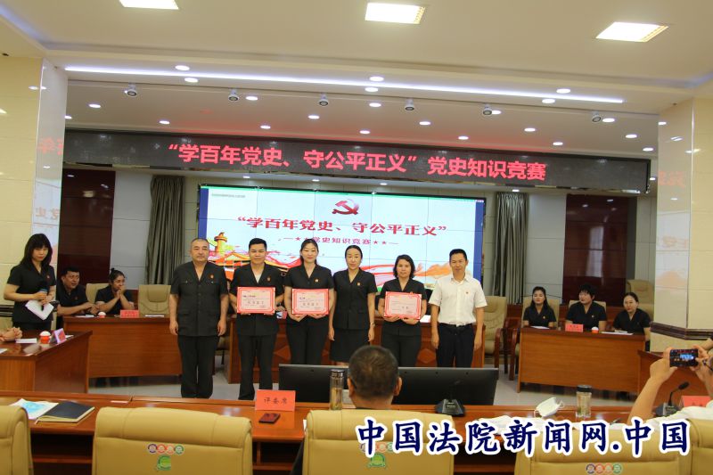 本次党史知识竞赛由六个党支部代表队参赛。竞赛内容以中国共产党历史为主,涵盖党史、新中国史、改革开放史、社会主义发展史以及党务知识应知应会。竞赛设置了个人必答题、小组必答题、抢答题、风险题四个环节。经过激烈角逐,行政部门党支部代表队、行政审判庭代表队、刑事审判庭代表队分别获得本次竞赛一、二、三等奖;审管办干部张琳、执行局法官助理阿地力·玉苏普喀地尔在竞赛中表现优异,被评为优秀选手。